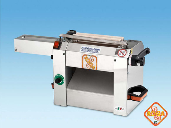 La sfogliatrice interamente Made in Italy per pasta fresca all’uovo da dolci, pizza e pasta da zucchero è stata concepita per risolvere i problemi di piccola e media produzione. Il sistema di impiego rende la macchina molto pratica e versatile: avendo la maniglia di regolazione con leva è possibile ottenere spessori vari che vanno da zero a 7,5; si possono quindi stendere pastelle di tutte le larghezze: da 22, 25, 32, 40 e 50 centimetri. Il motore è ventilato ed è realizzata con struttura in acciaio inox e alluminio. Può avere i cilindri in legno, ideale per realizzare una sfoglia casalinga, oppure i rulli in acciaio più durevoli nel tempo. Dotata di optional quali l’applicazione a tre tagli o singola per tagliolini, tagliatelle e pappardelle, la sfogliatrice per pasta e pizza presenta un alto grado di affidabilità, mentre i sistemi di antinfortunistica CE e le finiture completano il gradevole aspetto estetico e l'indispensabile sicurezza per l’operatore.